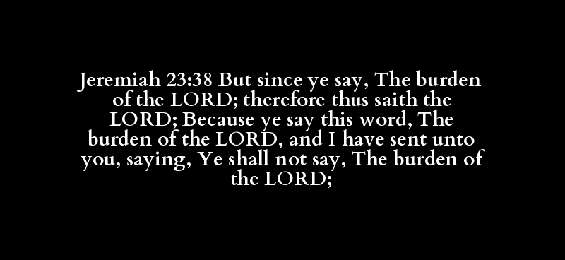 Jeremiah 23:38 But since ye say, The burden of the LORD; therefore thus saith the LORD; Because ye say this word, The burden of the LORD, and I have sent unto you, saying, Ye shall not say, The burden of the LORD;