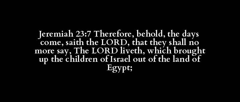 Jeremiah 23:7 Therefore, behold, the days come, saith the LORD, that they shall no more say, The LORD liveth, which brought up the children of Israel out of the land of Egypt;
