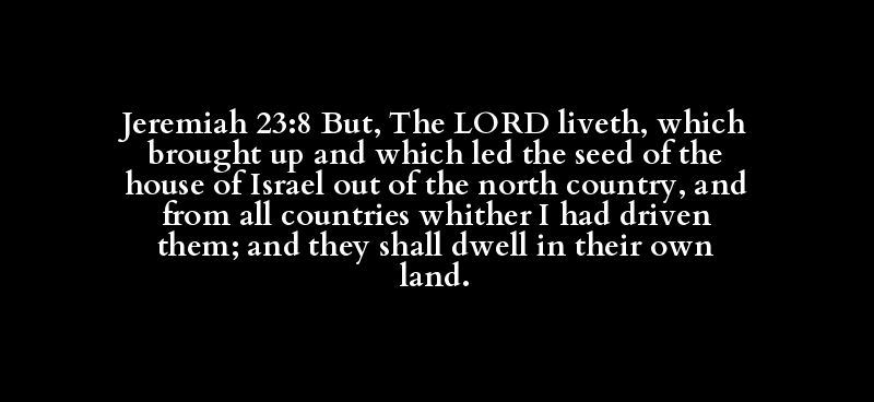 Jeremiah 23:8 But, The LORD liveth, which brought up and which led the seed of the house of Israel out of the north country, and from all countries whither I had driven them; and they shall dwell in their own land.