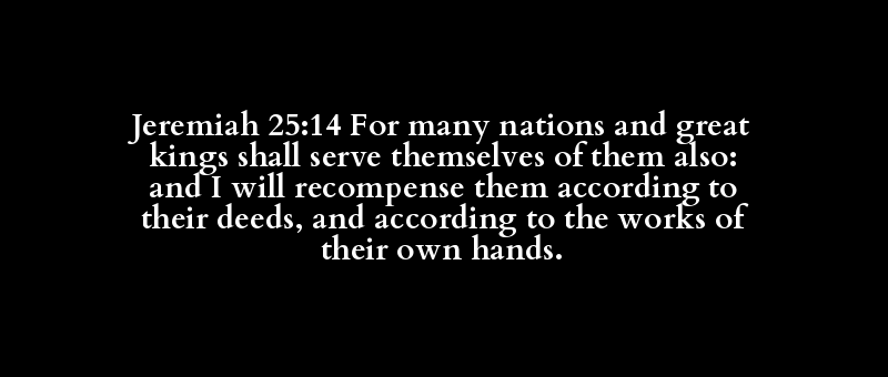 Jeremiah 25:14 For many nations and great kings shall serve themselves of them also: and I will recompense them according to their deeds, and according to the works of their own hands.