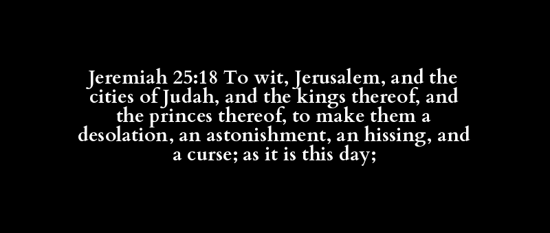 Jeremiah 25:18 To wit, Jerusalem, and the cities of Judah, and the kings thereof, and the princes thereof, to make them a desolation, an astonishment, an hissing, and a curse; as it is this day;