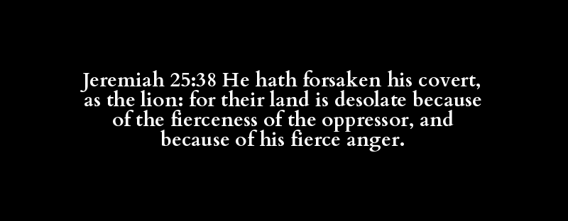 Jeremiah 25:38 He hath forsaken his covert, as the lion: for their land is desolate because of the fierceness of the oppressor, and because of his fierce anger.