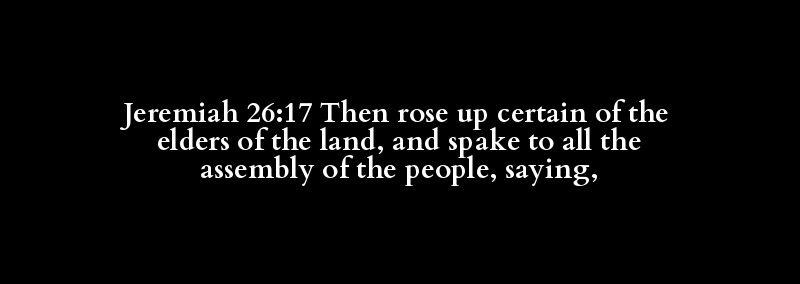 Jeremiah 26:17 Then rose up certain of the elders of the land, and spake to all the assembly of the people, saying,
