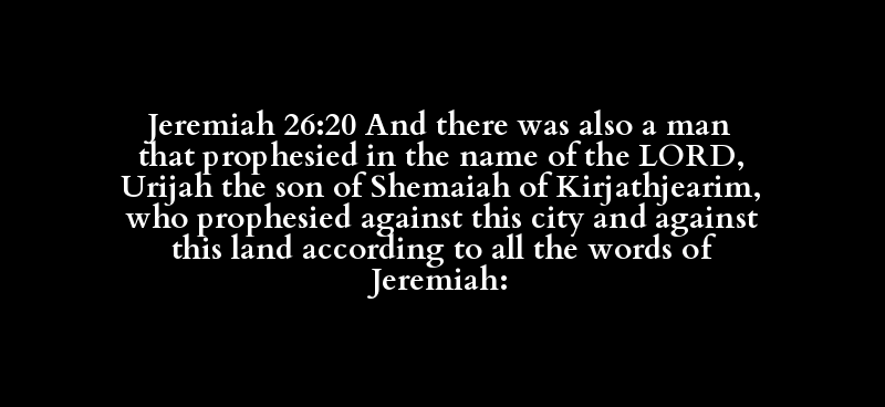 Jeremiah 26:20 And there was also a man that prophesied in the name of the LORD, Urijah the son of Shemaiah of Kirjathjearim, who prophesied against this city and against this land according to all the words of Jeremiah: