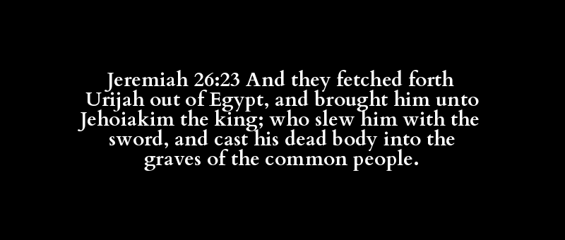 Jeremiah 26:23 And they fetched forth Urijah out of Egypt, and brought him unto Jehoiakim the king; who slew him with the sword, and cast his dead body into the graves of the common people.