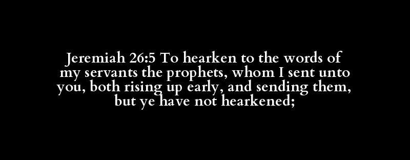 Jeremiah 26:5 To hearken to the words of my servants the prophets, whom I sent unto you, both rising up early, and sending them, but ye have not hearkened;