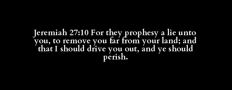 Jeremiah 27:10 For they prophesy a lie unto you, to remove you far from your land; and that I should drive you out, and ye should perish.