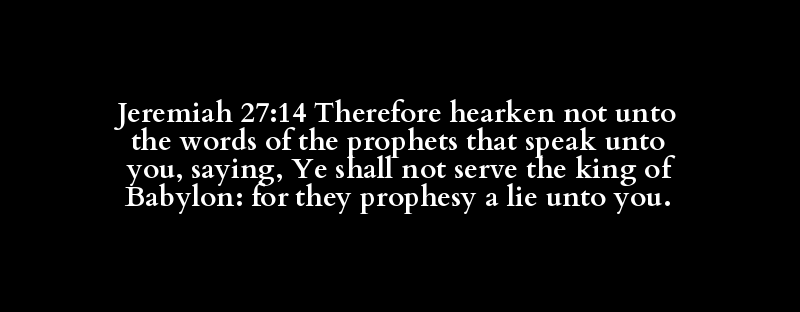 Jeremiah 27:14 Therefore hearken not unto the words of the prophets that speak unto you, saying, Ye shall not serve the king of Babylon: for they prophesy a lie unto you.
