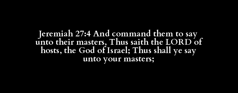 Jeremiah 27:4 And command them to say unto their masters, Thus saith the LORD of hosts, the God of Israel; Thus shall ye say unto your masters;