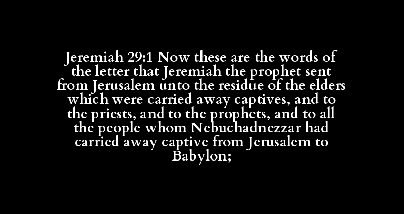 Jeremiah 29:1 Now these are the words of the letter that Jeremiah the prophet sent from Jerusalem unto the residue of the elders which were carried away captives, and to the priests, and to the prophets, and to all the people whom Nebuchadnezzar had carried away captive from Jerusalem to Babylon;
