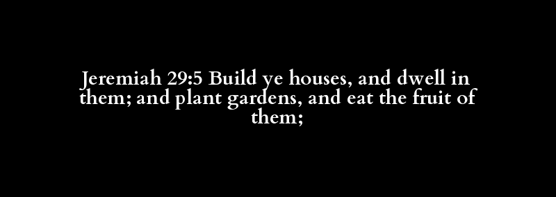 Jeremiah 29:5 Build ye houses, and dwell in them; and plant gardens, and eat the fruit of them;