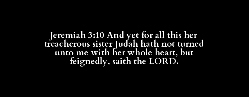 Jeremiah 3:10 And yet for all this her treacherous sister Judah hath not turned unto me with her whole heart, but feignedly, saith the LORD.
