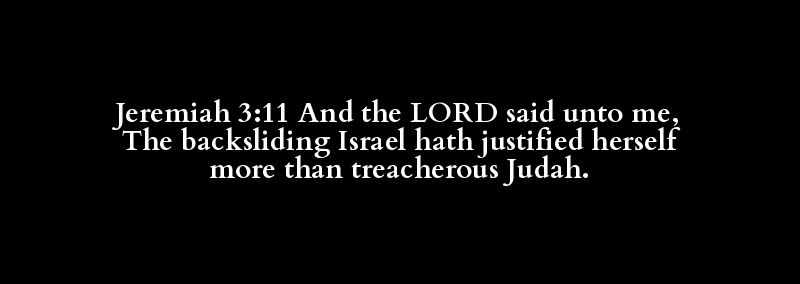 Jeremiah 3:11 And the LORD said unto me, The backsliding Israel hath justified herself more than treacherous Judah.