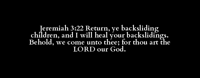 Jeremiah 3:22 Return, ye backsliding children, and I will heal your backslidings. Behold, we come unto thee; for thou art the LORD our God.