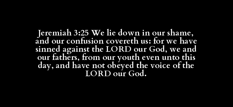 Jeremiah 3:25 We lie down in our shame, and our confusion covereth us: for we have sinned against the LORD our God, we and our fathers, from our youth even unto this day, and have not obeyed the voice of the LORD our God.