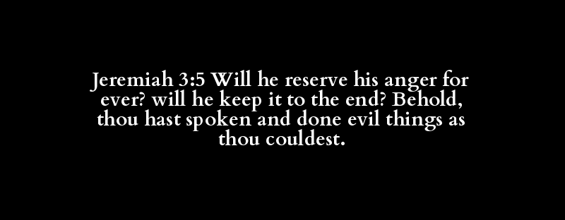 Jeremiah 3:5 Will he reserve his anger for ever? will he keep it to the end? Behold, thou hast spoken and done evil things as thou couldest.