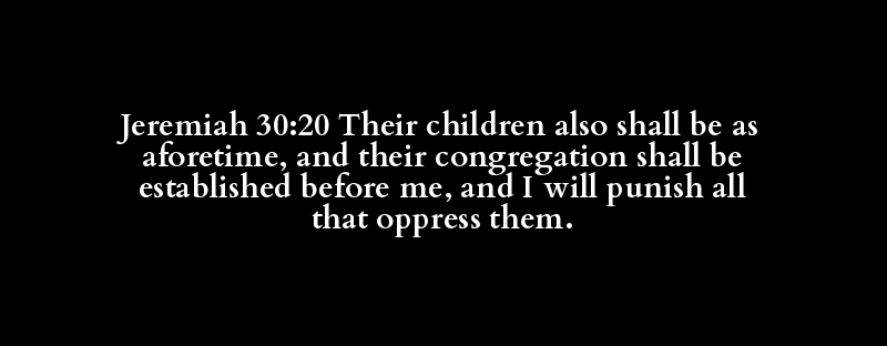 Jeremiah 30:20 Their children also shall be as aforetime, and their congregation shall be established before me, and I will punish all that oppress them.