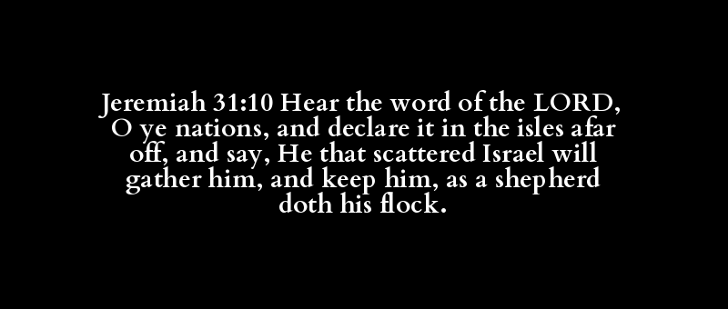 Jeremiah 31:10 Hear the word of the LORD, O ye nations, and declare it in the isles afar off, and say, He that scattered Israel will gather him, and keep him, as a shepherd doth his flock.
