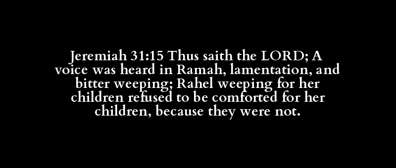 Jeremiah 31:15 Thus saith the LORD; A voice was heard in Ramah, lamentation, and bitter weeping; Rahel weeping for her children refused to be comforted for her children, because they were not.