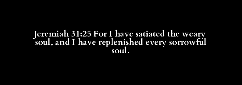 Jeremiah 31:25 For I have satiated the weary soul, and I have replenished every sorrowful soul.