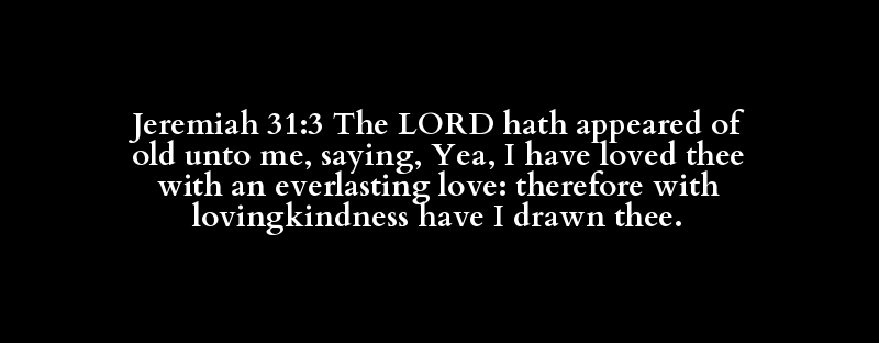Jeremiah 31:3 The LORD hath appeared of old unto me, saying, Yea, I have loved thee with an everlasting love: therefore with lovingkindness have I drawn thee.