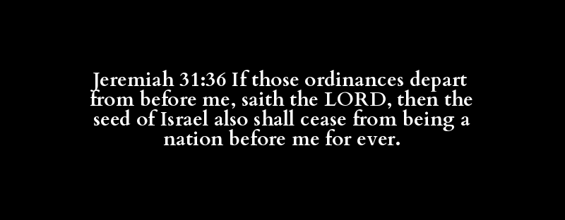 Jeremiah 31:36 If those ordinances depart from before me, saith the LORD, then the seed of Israel also shall cease from being a nation before me for ever.