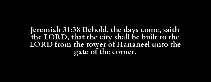 Jeremiah 31:38 Behold, the days come, saith the LORD, that the city shall be built to the LORD from the tower of Hananeel unto the gate of the corner.