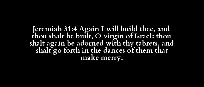 Jeremiah 31:4 Again I will build thee, and thou shalt be built, O virgin of Israel: thou shalt again be adorned with thy tabrets, and shalt go forth in the dances of them that make merry.