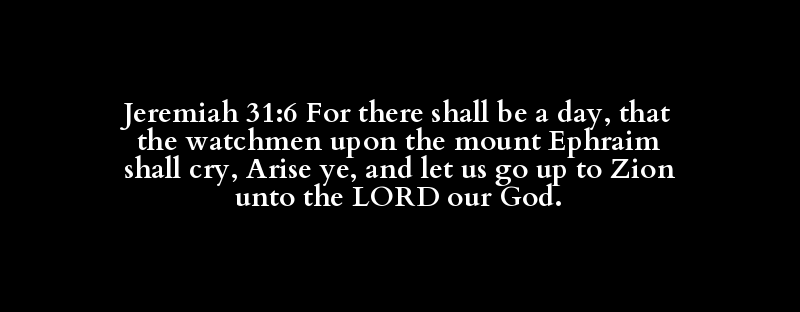 Jeremiah 31:6 For there shall be a day, that the watchmen upon the mount Ephraim shall cry, Arise ye, and let us go up to Zion unto the LORD our God.