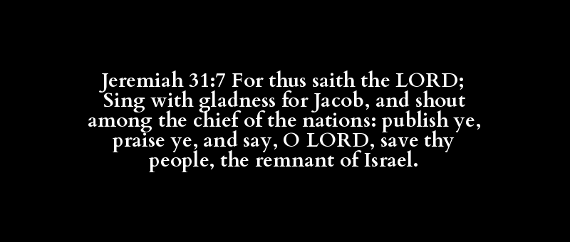 Jeremiah 31:7 For thus saith the LORD; Sing with gladness for Jacob, and shout among the chief of the nations: publish ye, praise ye, and say, O LORD, save thy people, the remnant of Israel.