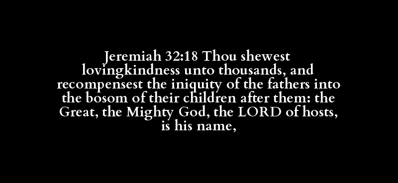 Jeremiah 32:18 Thou shewest lovingkindness unto thousands, and recompensest the iniquity of the fathers into the bosom of their children after them: the Great, the Mighty God, the LORD of hosts, is his name,