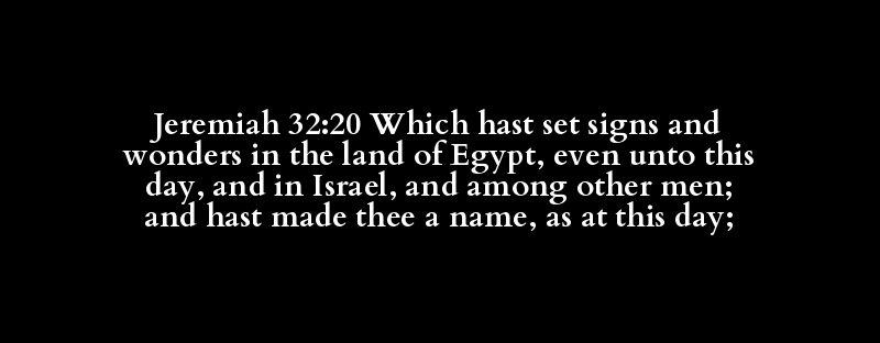 Jeremiah 32:20 Which hast set signs and wonders in the land of Egypt, even unto this day, and in Israel, and among other men; and hast made thee a name, as at this day;