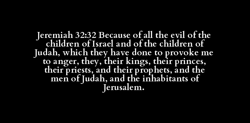 Jeremiah 32:32 Because of all the evil of the children of Israel and of the children of Judah, which they have done to provoke me to anger, they, their kings, their princes, their priests, and their prophets, and the men of Judah, and the inhabitants of Jerusalem.