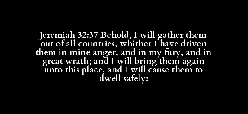 Jeremiah 32:37 Behold, I will gather them out of all countries, whither I have driven them in mine anger, and in my fury, and in great wrath; and I will bring them again unto this place, and I will cause them to dwell safely: