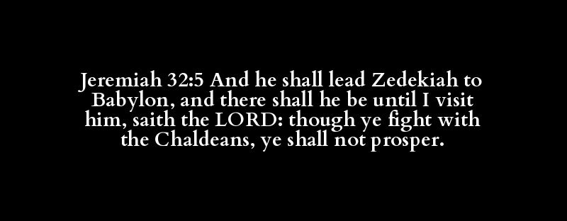 Jeremiah 32:5 And he shall lead Zedekiah to Babylon, and there shall he be until I visit him, saith the LORD: though ye fight with the Chaldeans, ye shall not prosper.