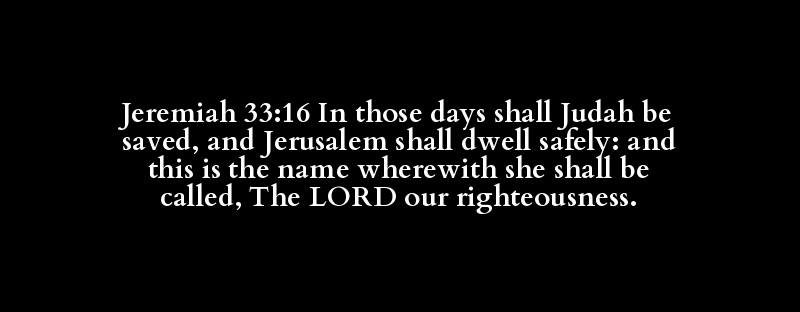Jeremiah 33:16 In those days shall Judah be saved, and Jerusalem shall dwell safely: and this is the name wherewith she shall be called, The LORD our righteousness.