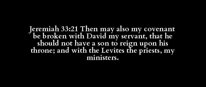 Jeremiah 33:21 Then may also my covenant be broken with David my servant, that he should not have a son to reign upon his throne; and with the Levites the priests, my ministers.