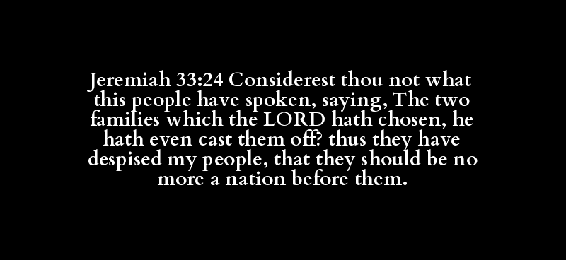 Jeremiah 33:24 Considerest thou not what this people have spoken, saying, The two families which the LORD hath chosen, he hath even cast them off? thus they have despised my people, that they should be no more a nation before them.