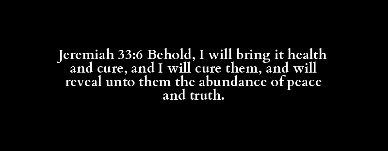 Jeremiah 33:6 Behold, I will bring it health and cure, and I will cure them, and will reveal unto them the abundance of peace and truth.
