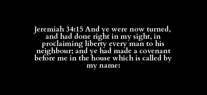 Jeremiah 34:15 And ye were now turned, and had done right in my sight, in proclaiming liberty every man to his neighbour; and ye had made a covenant before me in the house which is called by my name:
