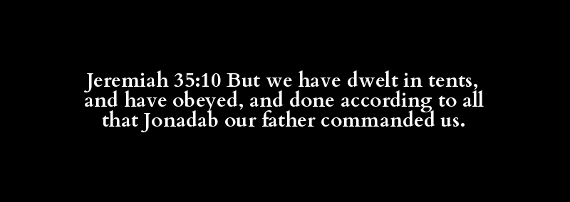 Jeremiah 35:10 But we have dwelt in tents, and have obeyed, and done according to all that Jonadab our father commanded us.