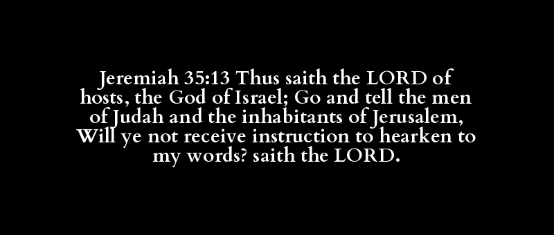 Jeremiah 35:13 Thus saith the LORD of hosts, the God of Israel; Go and tell the men of Judah and the inhabitants of Jerusalem, Will ye not receive instruction to hearken to my words? saith the LORD.