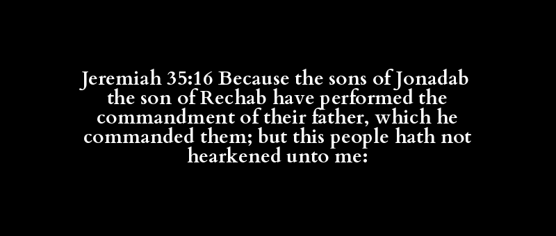 Jeremiah 35:16 Because the sons of Jonadab the son of Rechab have performed the commandment of their father, which he commanded them; but this people hath not hearkened unto me: