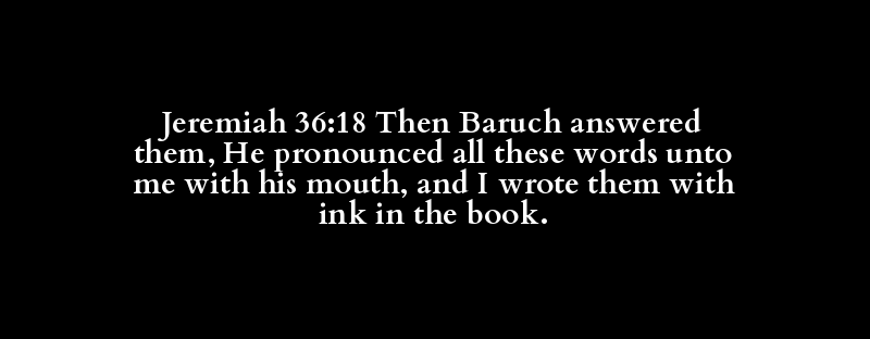 Jeremiah 36:18 Then Baruch answered them, He pronounced all these words unto me with his mouth, and I wrote them with ink in the book.