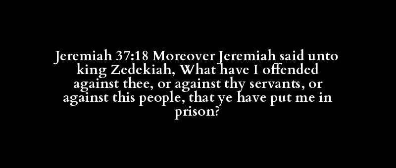Jeremiah 37:18 Moreover Jeremiah said unto king Zedekiah, What have I offended against thee, or against thy servants, or against this people, that ye have put me in prison?