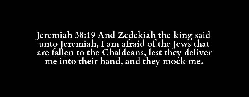 Jeremiah 38:19 And Zedekiah the king said unto Jeremiah, I am afraid of the Jews that are fallen to the Chaldeans, lest they deliver me into their hand, and they mock me.
