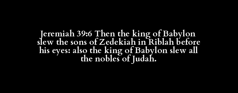 Jeremiah 39:6 Then the king of Babylon slew the sons of Zedekiah in Riblah before his eyes: also the king of Babylon slew all the nobles of Judah.