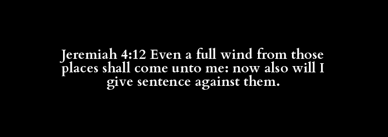 Jeremiah 4:12 Even a full wind from those places shall come unto me: now also will I give sentence against them.
