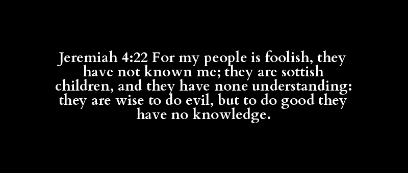 Jeremiah 4:22 For my people is foolish, they have not known me; they are sottish children, and they have none understanding: they are wise to do evil, but to do good they have no knowledge.
