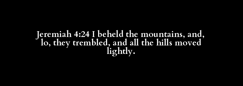 Jeremiah 4:24 I beheld the mountains, and, lo, they trembled, and all the hills moved lightly.